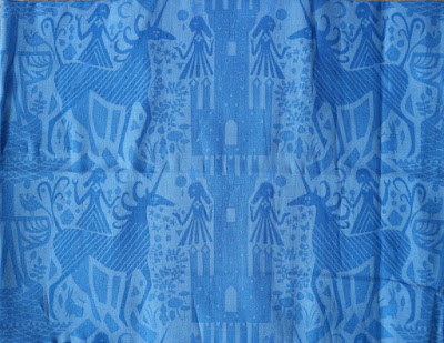 I found seven fat quarters that looked like good possibilities for my sister's quilt (and if they don't, I like them anyway). All of them are batiks, although that hadn't been my intent. I was drawn to the pebbly grey fabric and a black flowery print - I seem to be on a black-and-white kick lately. Then behold! blue fabric with unicorns, maidens and castles. It was in the fat quarter bargain bin - I had to come home with that! Have no idea what I'll do with it, but it amuses me.